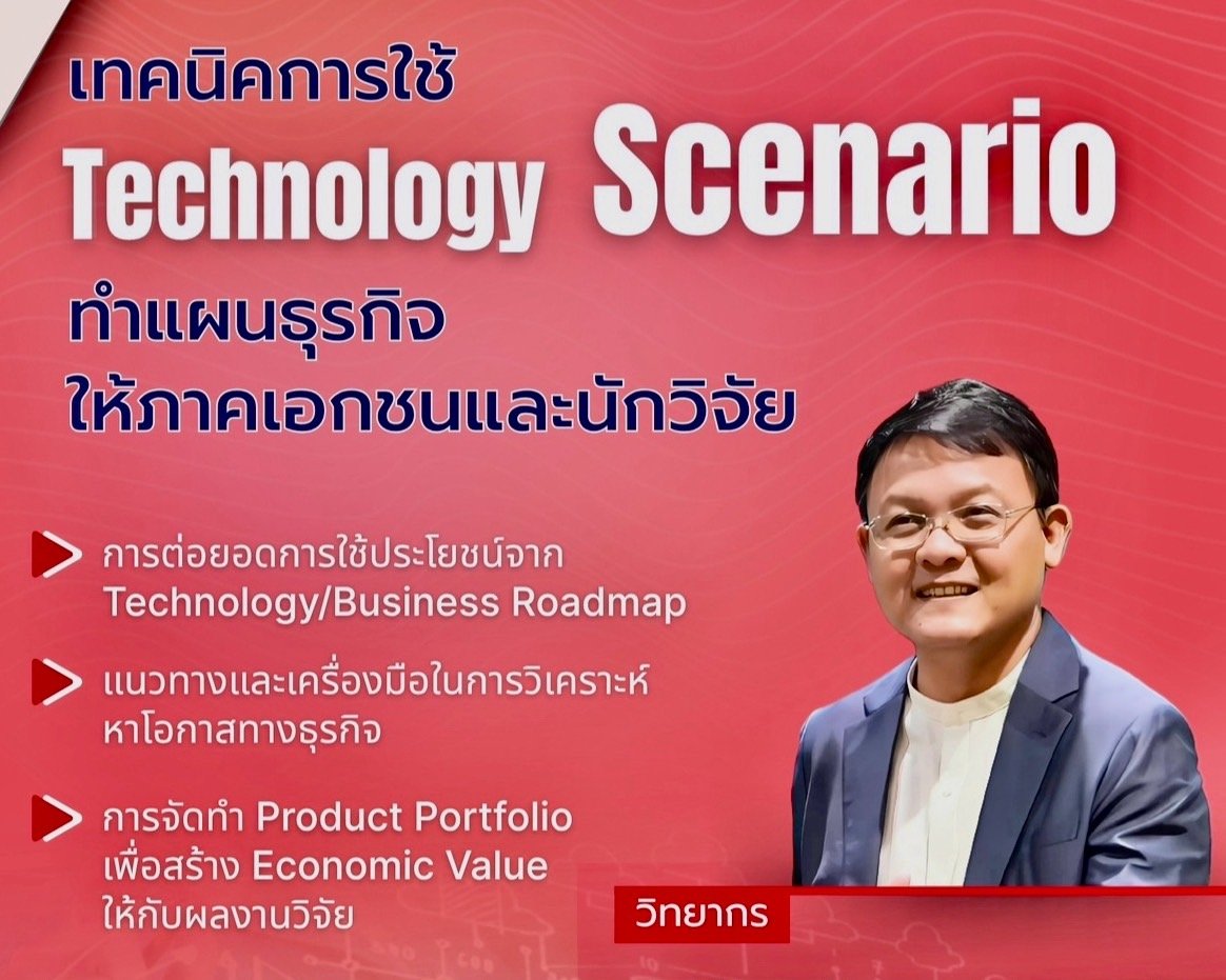 ในหัวข้อ เทคนิคการใช้ Technology Scenario ทำแผนธุรกิจให้ภาคเอกชนและนักวิจัย